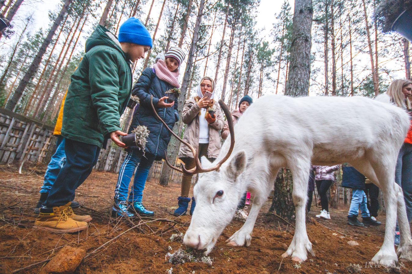 Здесь живут Северные олени, которых можно покормить ягелем.